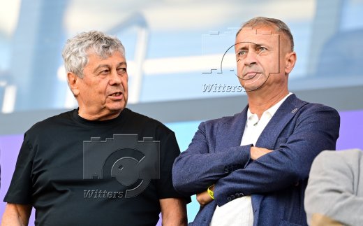 v.l. Trainer Mircea Lucescu (Nationalmannschaft, Rumaenien), Gabriel Bodescu (Rumaenien)