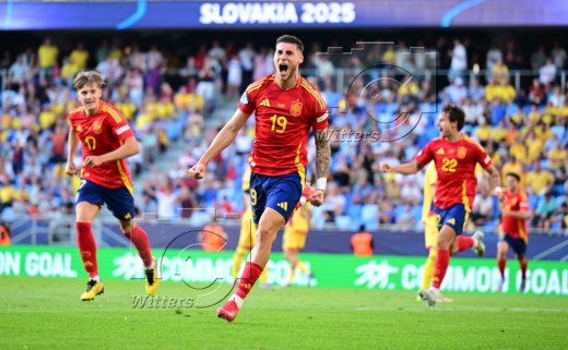 Bratislava, 14.06.2025, Fussball, UEFA U21-EM 2025 in der Slowakei, Gruppenphase, Spanien - Rumaenien 2:1