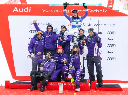Emma Aicher (Deutschland, 3. Platz) mit Team