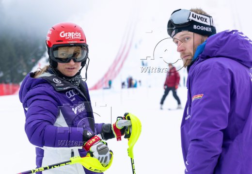 v.l. Emma Aicher (Deutschland), DSV-Trainer Michael Herzog