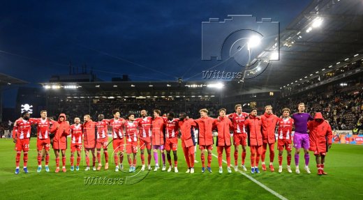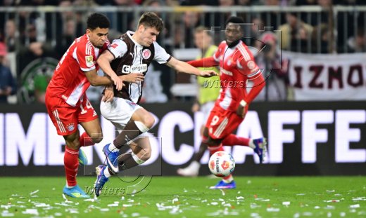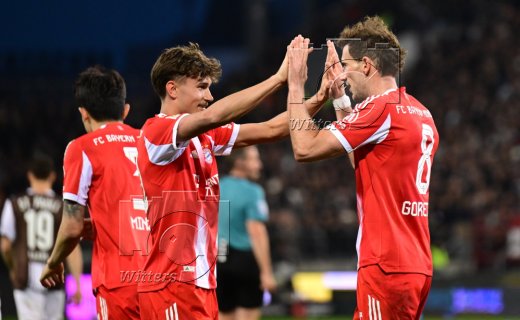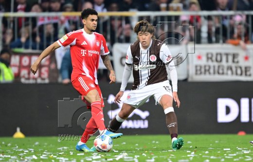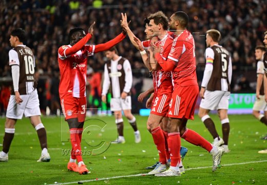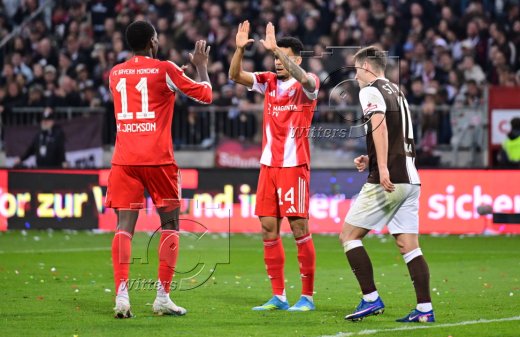 0:4 Tor, Jubel, v.l. Torschuetze Nicolas Jackson, Luis Diaz (Bayern), Arkadiusz Pyrka (St. Pauli)
