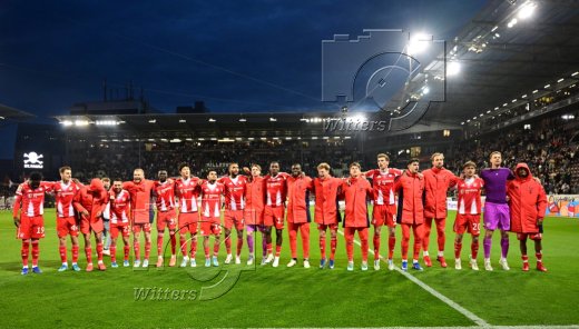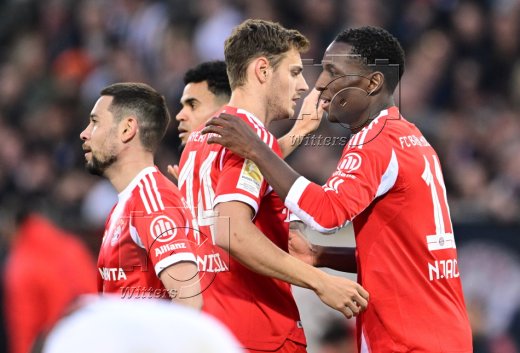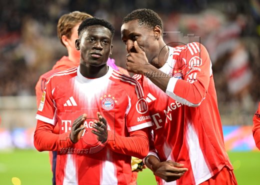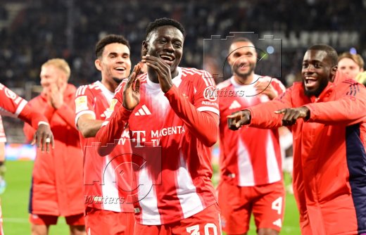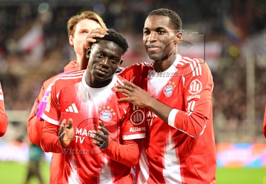 Schlussjubel, v.l. Bara Sapoko Ndiaye, Nicolas Jackson (Bayern)