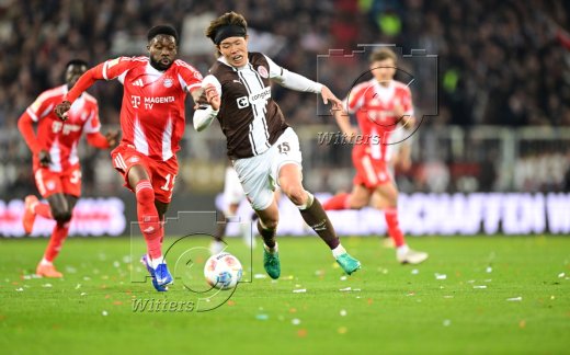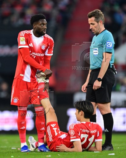 v.l. Alphonso Davies, Hiroki Ito (Bayern), Schiedsrichter Tobias Stieler