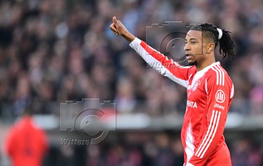 0:6 Tor, Jubel wird nach Videobeweis annulliert, v.l. Bara Sapoko Ndiaye, Min-Jae Kim, Torschuetze Leon Goretzka, Jonathan Tah (Bayern)