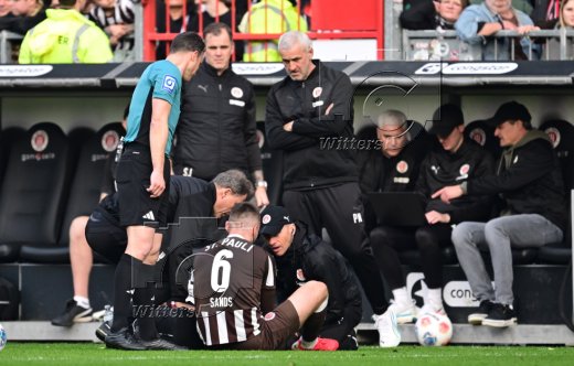 v.l. Mannschaftsarzt Dr. Volker Carrero, Verletzung James Sands (St. Pauli)