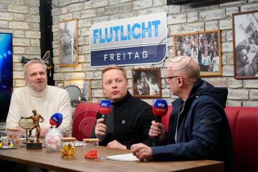 v.l. Kommentator Frank Buschmann (Sky), Florian ''Schmiso'' Schmidt-Sommerfeld