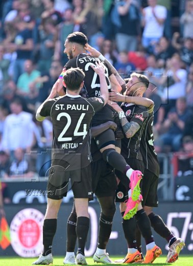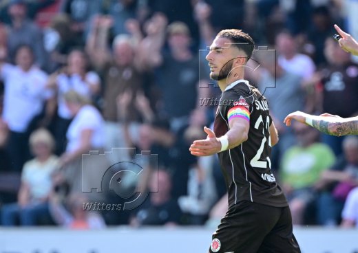 1:1 Tor, Jubel, v.l. Connor Metcalfe, Torschuetze Leart Paqarada (St. Pauli), Marcel Hartel