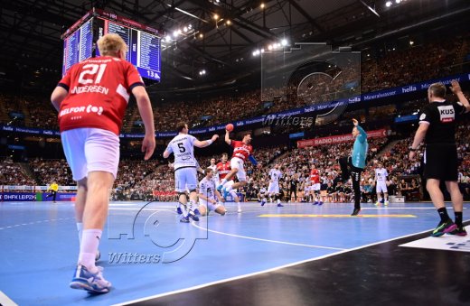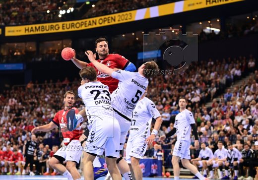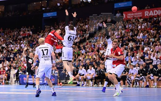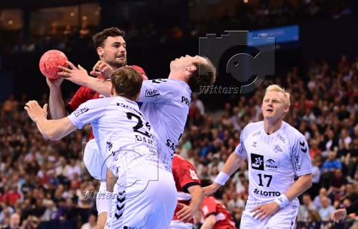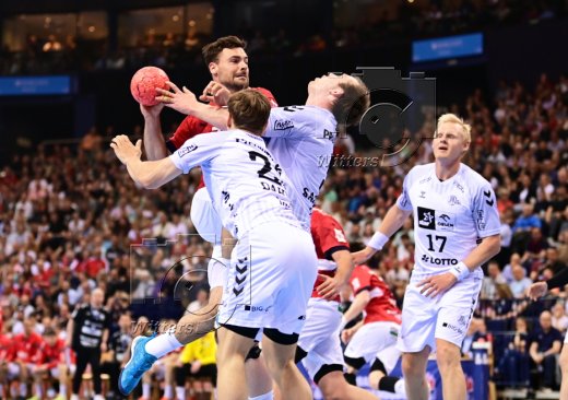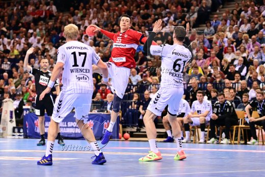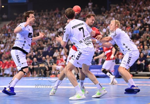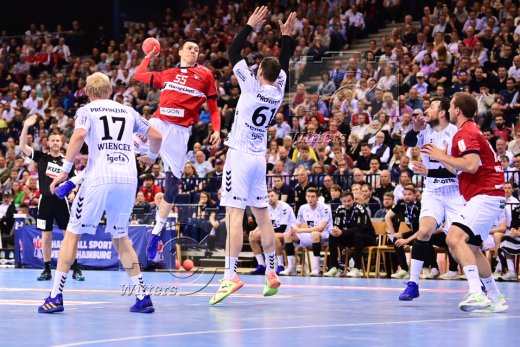 v.l. Sander Sagosen, Magnus Landin Jacobsen, Niklas Weller (Hamburg), Patrick Wiencek