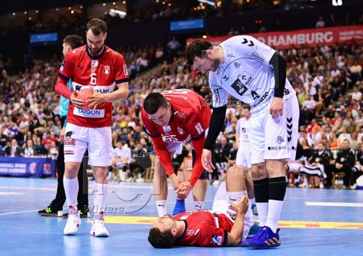v.l. Azat Valiullin (Hamburg), Hendrik Pekeler, Domagoj Duvnjak
