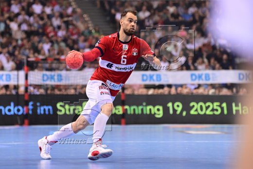 v.l. Frederik Bo Andersen, Sander Sagosen, Magnus Landin Jacobsen, Andreas Magaard, Dani Baijens (Hamburg)