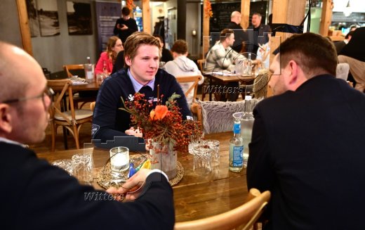 v.l. Clemens Wickler (Beachvolleyball), Kalle Pieper (Beachvolleyball), Wilhelm Maximilian Just (Beachvolleyball), Peter Merck (Geschaeftsfuehrer der Golf Lounge)