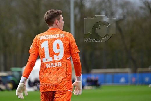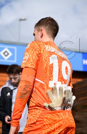 Torwart Matheo Raab (HSV) mit den Handschuhen in der Hose