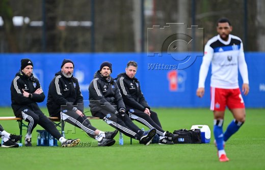 v.l. Co-Trainer Julian Huebner, Trainer Tim Walter (HSV), Athletiktrainer Daniel Muessig, Physiotherapeut Mario Reicherz, Xavier Amaechi (HSV)