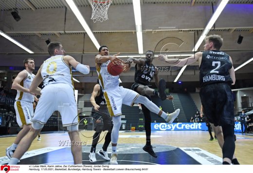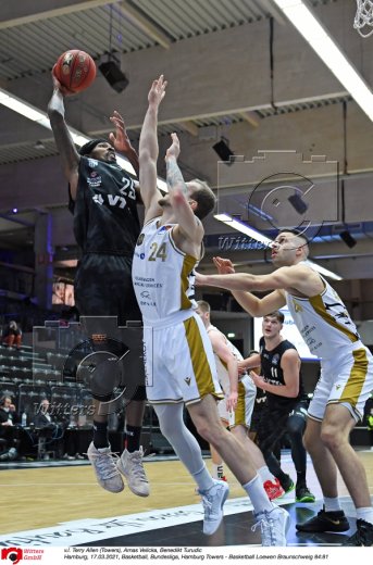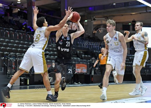 Hamburg, 17.03.2021, Basketball, Bundesliga, Hamburg Towers - Basketball Loewen Braunschweig 84:81