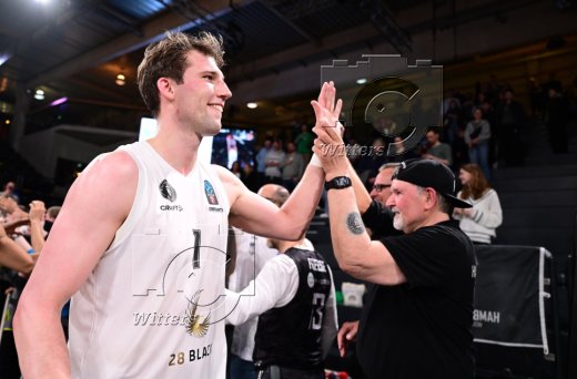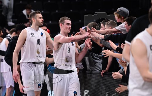 Schlussjubel v.l. Jonas Wohlfarth-Bottermann, Ziga Samar (Towers) mit Fans