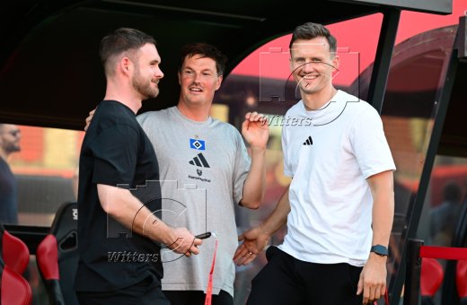 v.l. Sebastian Dirscherl (Chefscout HSV), Trainer Merlin Polzin (HSV), Claus Costa (Direktor Profifussball HSV)