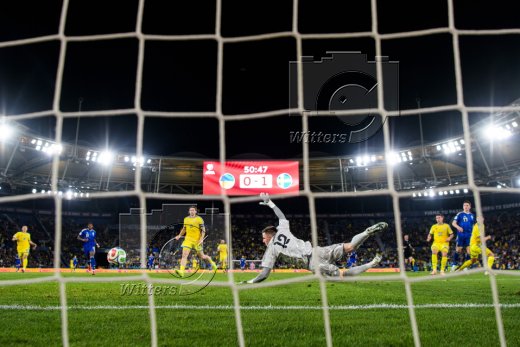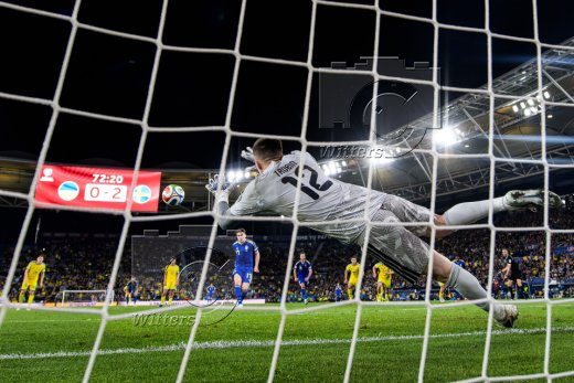 0:1 Tor, v.l. Valeriy Bondar, Torschuetze Viktor Gyoekeres (Schweden), Torwart Anatoliy Trubin (Ukraine)