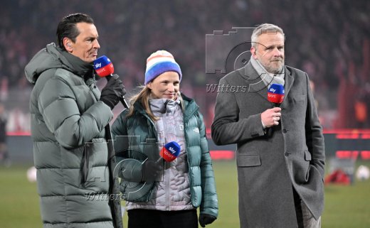 v.l. Moderator Sebastiean Hellmann, TV-Expertin Tabea Kemme, TV-Experte Dietmar Hamann