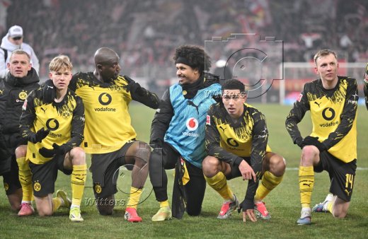 Schlussjubel v.l. Nico Schlotterbeck, Carney Chukwuemeka, Fabio Silva, Filippo Mane, Yan Couto, Waldemar Anton (Dortmund)