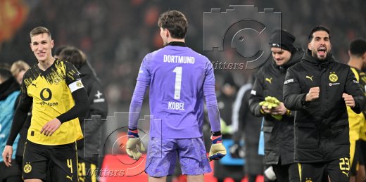 Schlussjubel v.l. Torwart Gregor Kobel (Dortmund), Nico Schlotterbeck, Emre Can