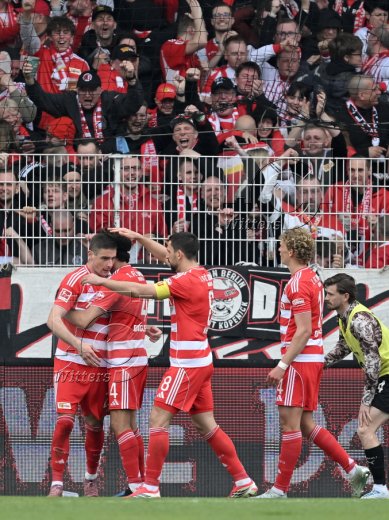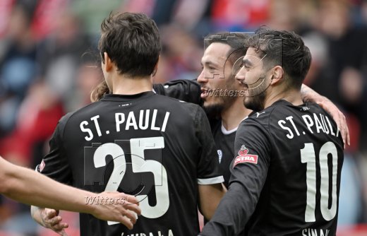 0:1 Tor, Jubel, v.l. Danel Sinani, Torschuetze Mathias Pereira Lage (St. Pauli)