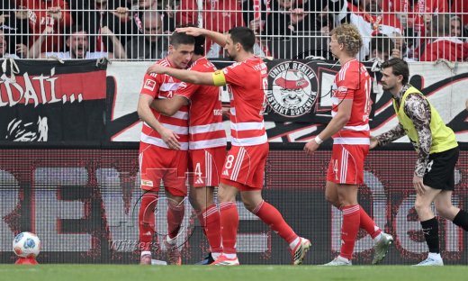 1:1 Tor, Jubel, v.l. Torschuetze Andrej Ilic, Diogo Leite, Rani Khedira, Leopold Querfeld (Union)