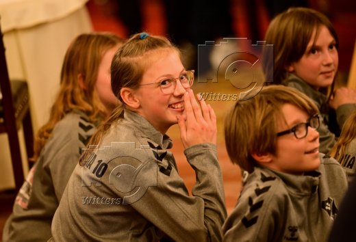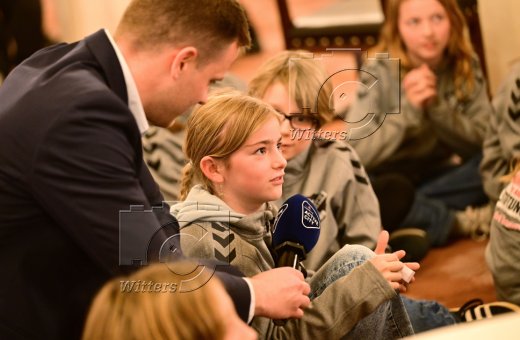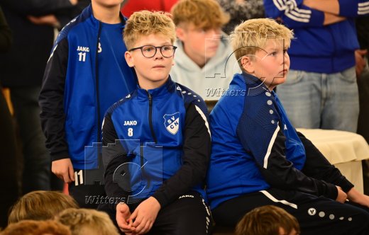 Dominik Voigt (HFV-Geschaeftsfuehrer) mit Kindern vom SV Curslack-Neuengamme
