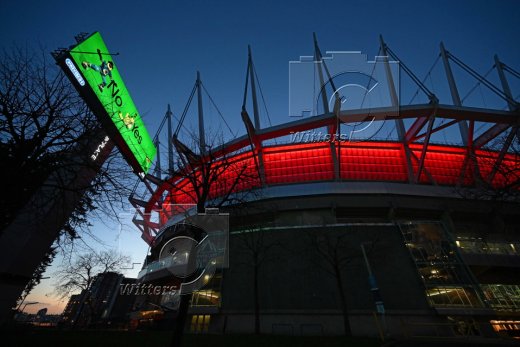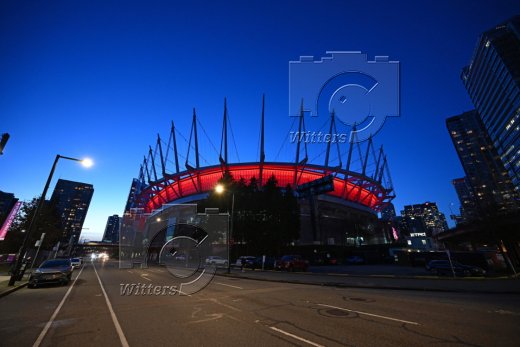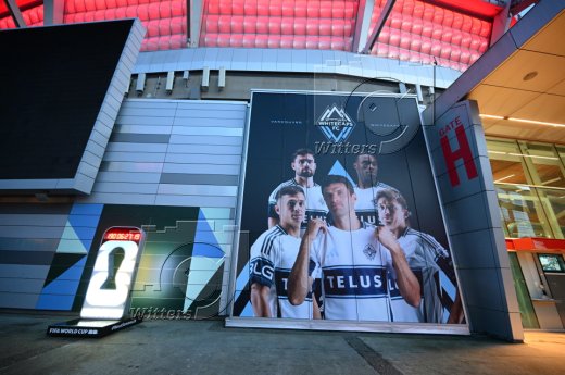 BC Place Stadium, Countdown-Uhr der FIFA Fussball-WM 2026, Plakat mit Thomas Mueller (Deutschland, M.)