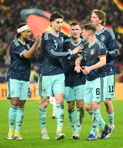 1:0 Tor, Jubel, v.l. Serge Gnabry, Torschuetze Kai Havertz, Joshua Kimmich, Nick Woltemade (Deutschland)