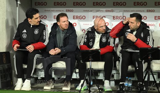 v.l. Co-Trainer Benjamin Huebner, Bundestrainer Julian Nagelsmann (Deutschland), Co-Trainer Afred Schreuder, Mads Buttgereit (Spezialtrainer fuer Standardsituationen)