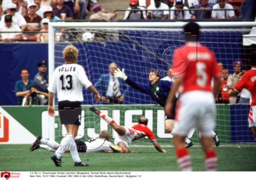 1:2 Tor v.l. Torschuetze Yordan Letchkov (Bulgarien), Torwart Bodo Illgner (Deutschland)