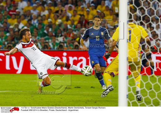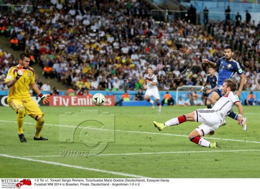 1:0 Tor v.l. Torschuetze Mario Goetze (Deutschland), Martin Demichelis, Torwart Sergio Romero