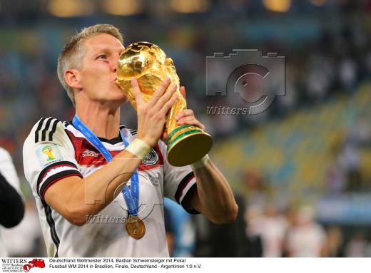Deutschland Weltmeister 2014, Bastian Schweinsteiger mit Pokal