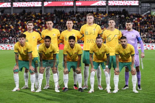 hinten v.l. Connor Metcalfe, Lewis Miller, Mitchell Duke, Harry Souttar, Alessandro Circati, Torwart Matt Ryan (Australien)