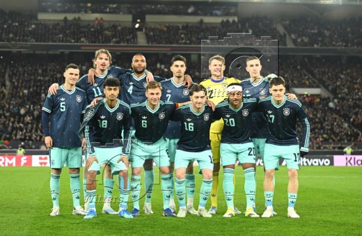 hinten v.l. Nico Schlotterbeck, Nick Woltemade, Leon Goretzka, Jonathan Tah, Aleksandar Pavlovic, Torwart Oliver Baumann (Deutschland)
