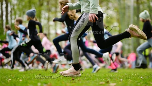 Hamburg, 23.04.2026, Kindersport, Kinder Waldlauf im Stadtpark