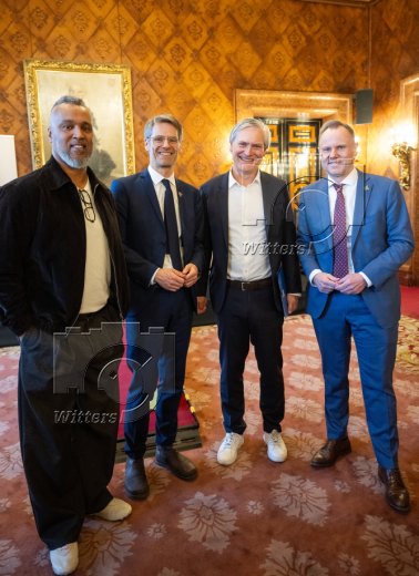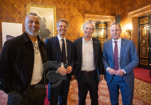 v.l. Patrick Esume, Steffen Ruelke (Leitung Vorprojekt Olympische und Paralympische Spiele in Hamburg), Alexander Otto (Kuratoriumsvorsitzender der Alexander Otto Sportstiftung), Andy Grote (Senator fuer Inneres und Sport Hamburg)