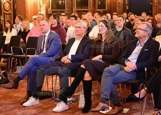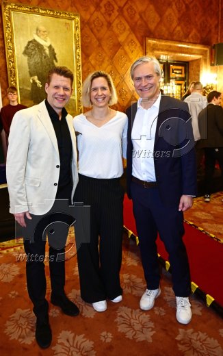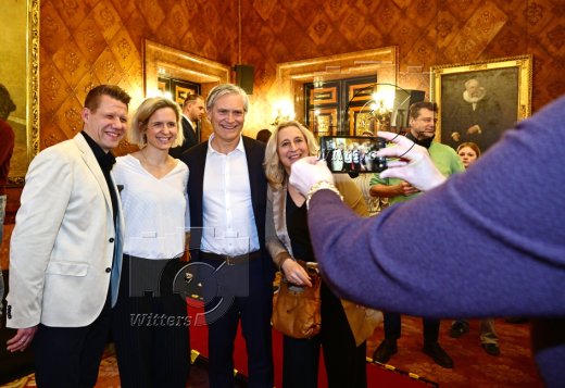v.l. Andy Grote (Senator fuer Inneres und Sport Hamburg), Alexander Otto (Kuratoriumsvorsitzender der Alexander Otto Sportstiftung) mit Ehefrau Dorit, Laudator Dr. Jens Baas (Vorstandsvorsitzender Techniker Krankenkasse TK)