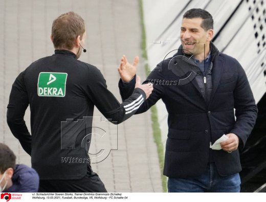 v.l. Schiedsrichter Soeren Storks, Trainer Dimitrios Grammozis (Schalke)