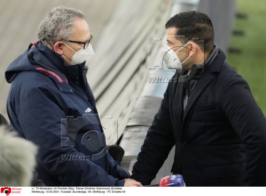 v.l. TV-Moderator Uli Potofski (Sky), Trainer Dimitrios Grammozis (Schalke)