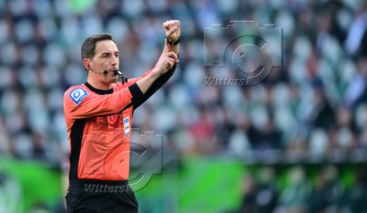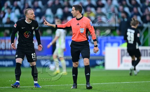 v.l. Maximilian Arnold (Wolfsburg), Schiedsrichter Benjamin Brand