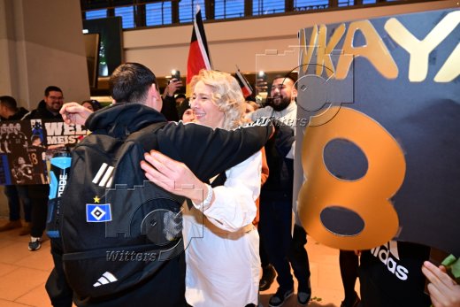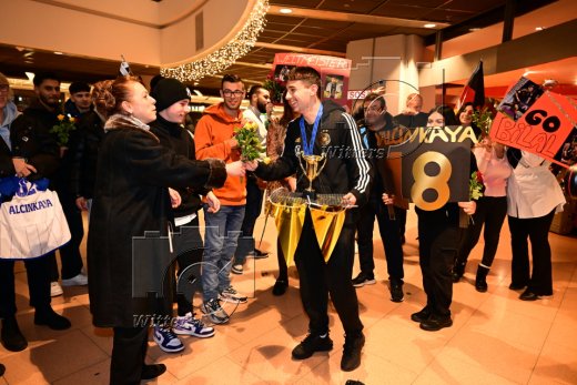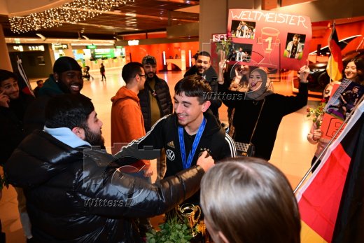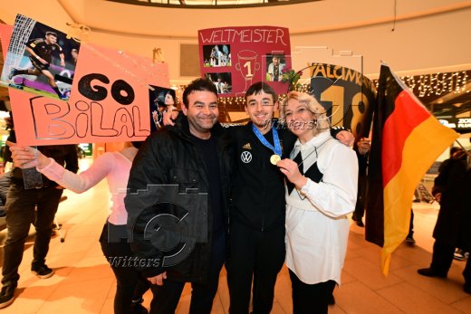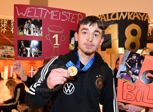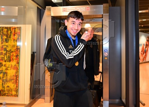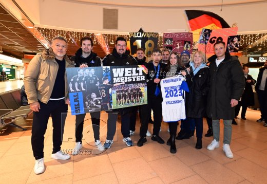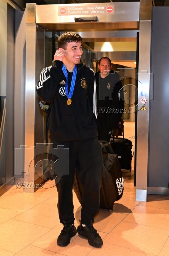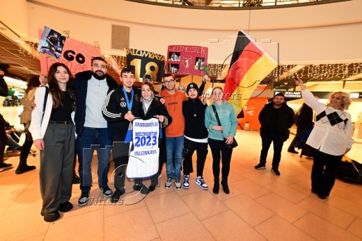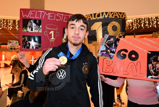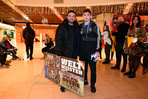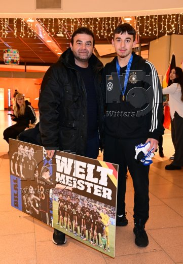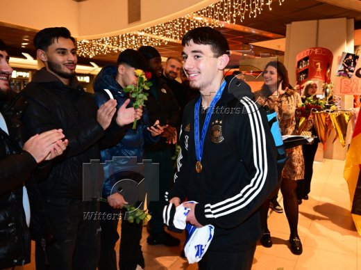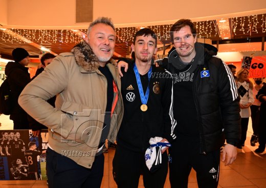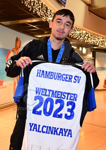 Hamburg, 04.12.2023, Fussball, FIFA U17 WM 2023 in Indonesien, U17-Weltmeister Bilal Yalcinkaya (Hamburger SV), Ankunft am Flughafen Hamburg-Fuhlsbuettel