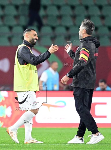 v.l. Trainer Patrice Beaumelle (Angola), Mohamed Salah (Aegypten) nach Spielende