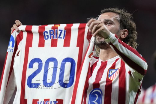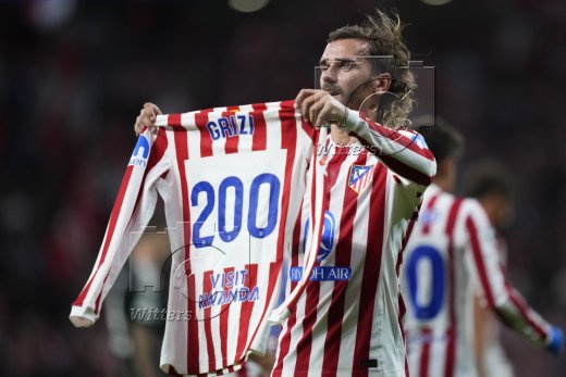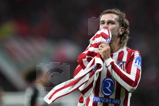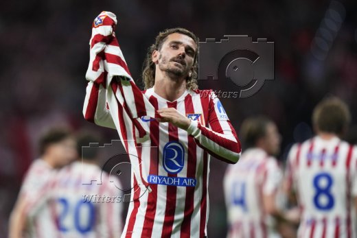3:0 Tor, Jubel, Torschuetze Antoine Griezmann (Atletico) mit Trikot, 200. Tor fuer Atletico Madrid
