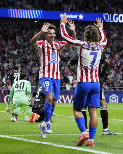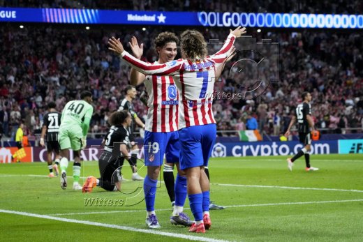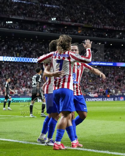 3:0 Tor, Jubel, v.l. Julian Alvarez, Torschuetze Antoine Griezmann (Atletico)