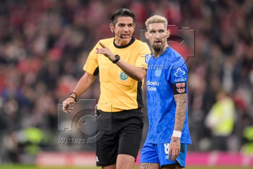 v.l. Schiedsrichter Deniz Aytekin, Robert Andrich (Leverkusen)