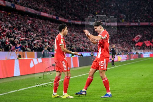 3:1 Tor, Jubel, v.l. Torschuetze Luis Diaz, Aleksandar Pavlovic (Bayern)