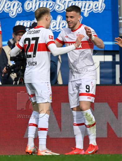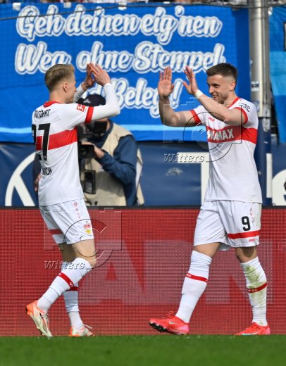 0:3 Tor, Jubel, v.l. Torschuetze Ermedin Demirovic, Ramon Hendriks (Stuttgart)