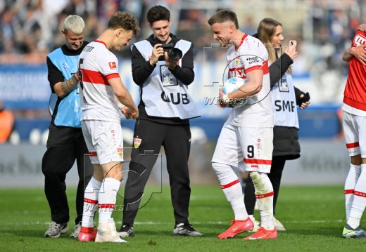 Schlussjubel, v.l. Yannik Keitel, Ermedin Demirovic (Stuttgart)