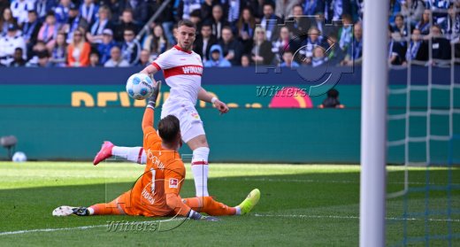 0:3 Tor, v.l. Torschuetze Ermedin Demirovic (Stuttgart), Torwart Timo Horn (Bochum)